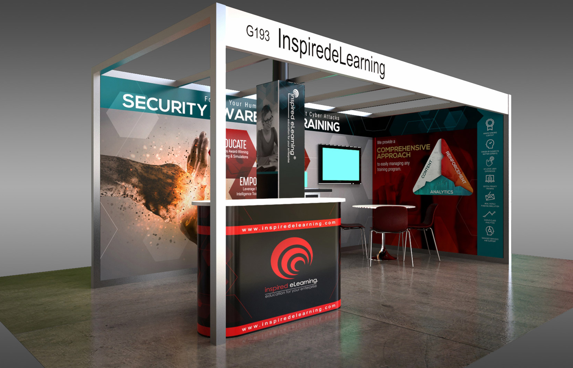 Full visual system for Inspired eLearning’s booth, including all large-format graphics and branding elements, delivering a polished and high-impact presence on the convention floor.