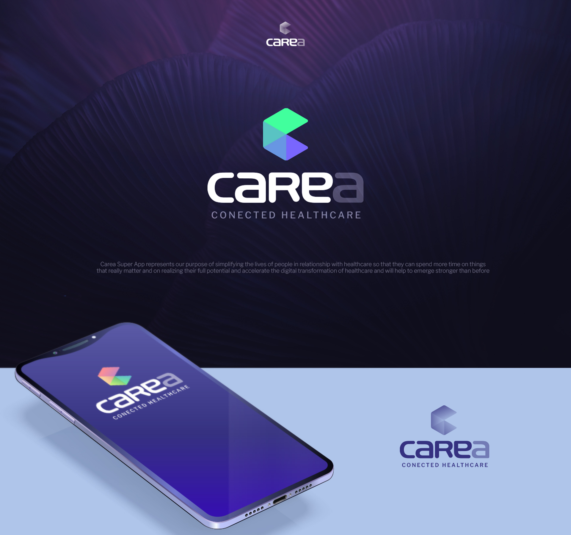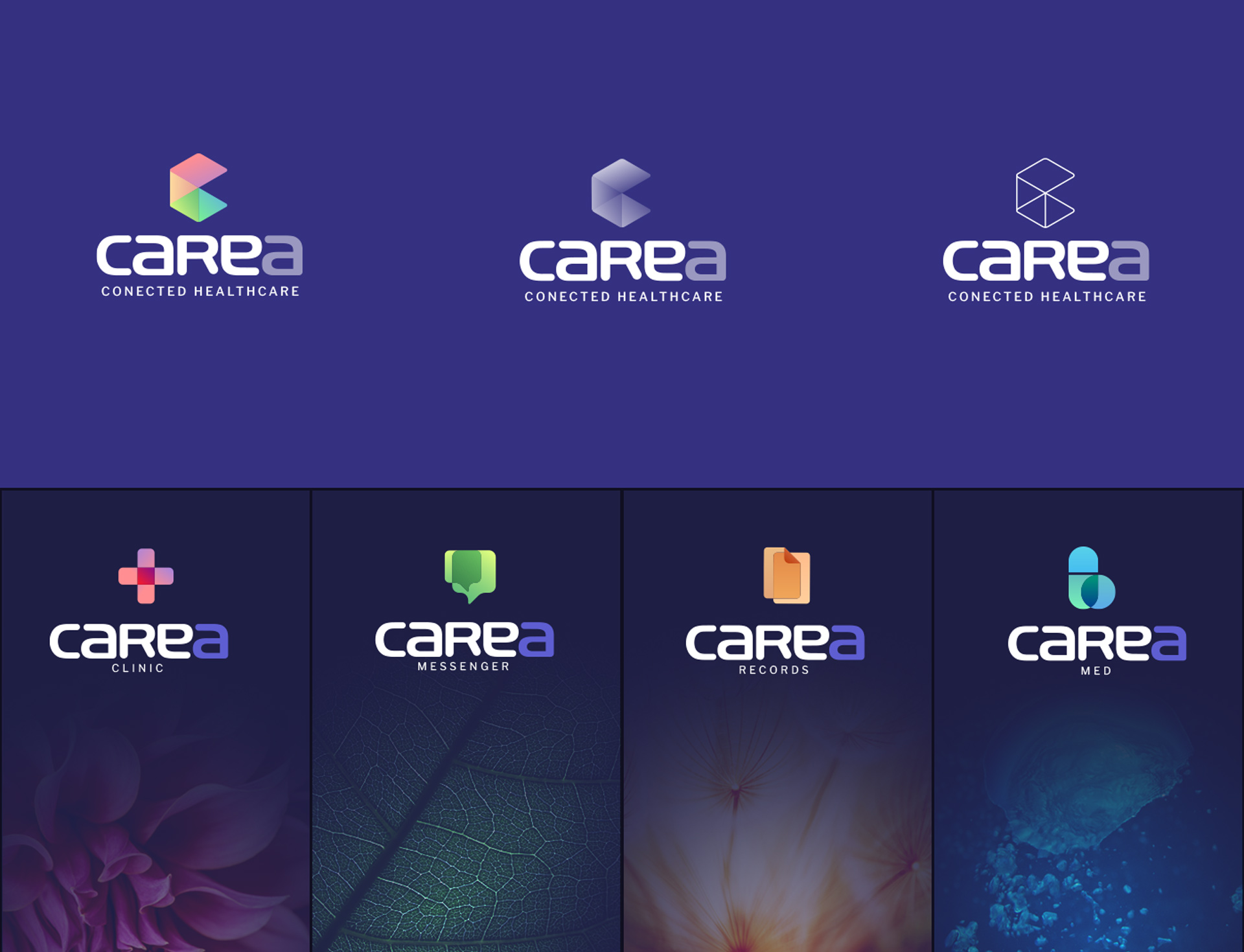 Visual identity and branding system for a connected healthcare platform. The work included logo exploration, color system development, iconography, and sub-brand concepts for different modules within the app ecosystem—Clinic, Messenger, Records, and Med. The project established a cohesive visual direction designed for scalability across mobile and digital applications.