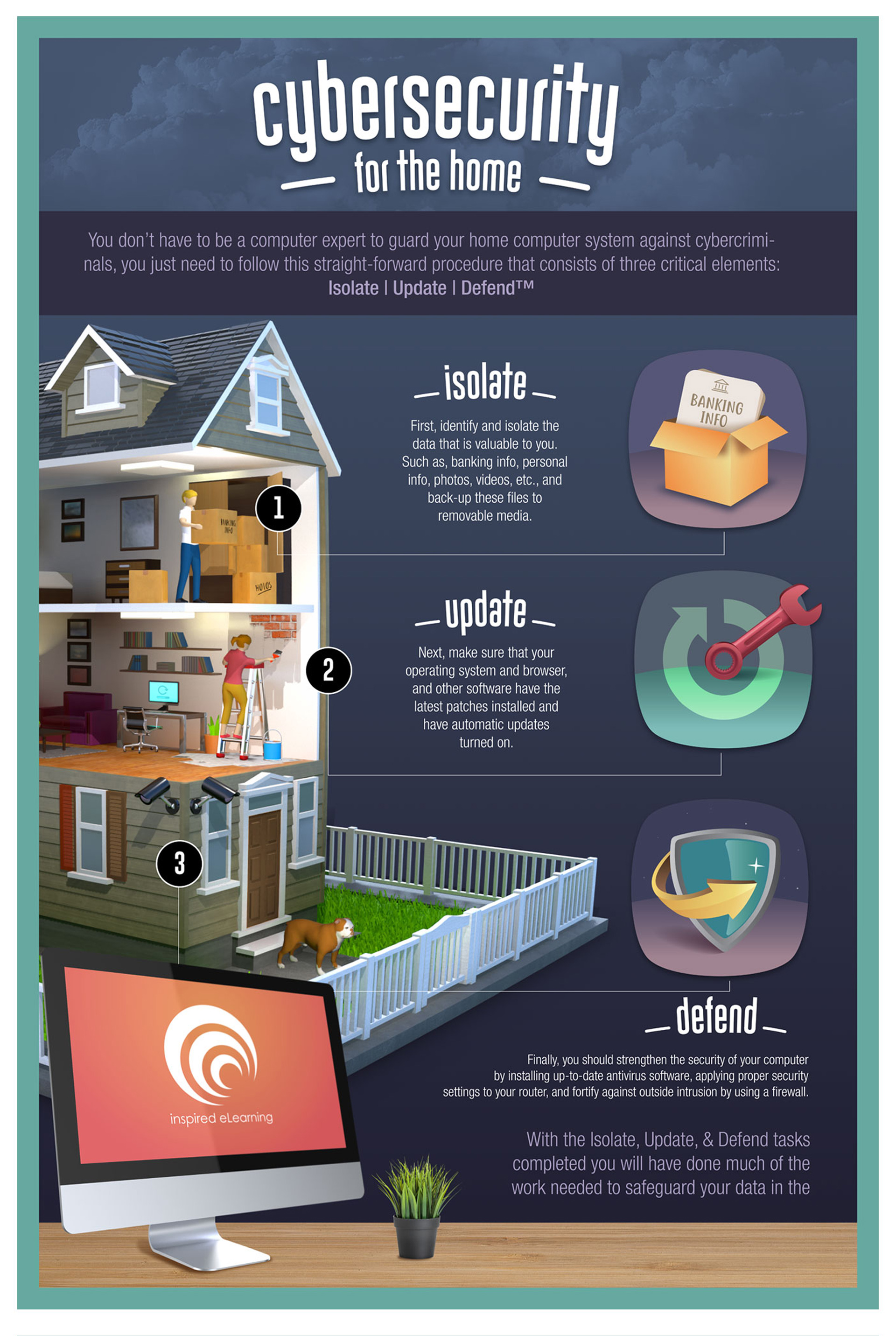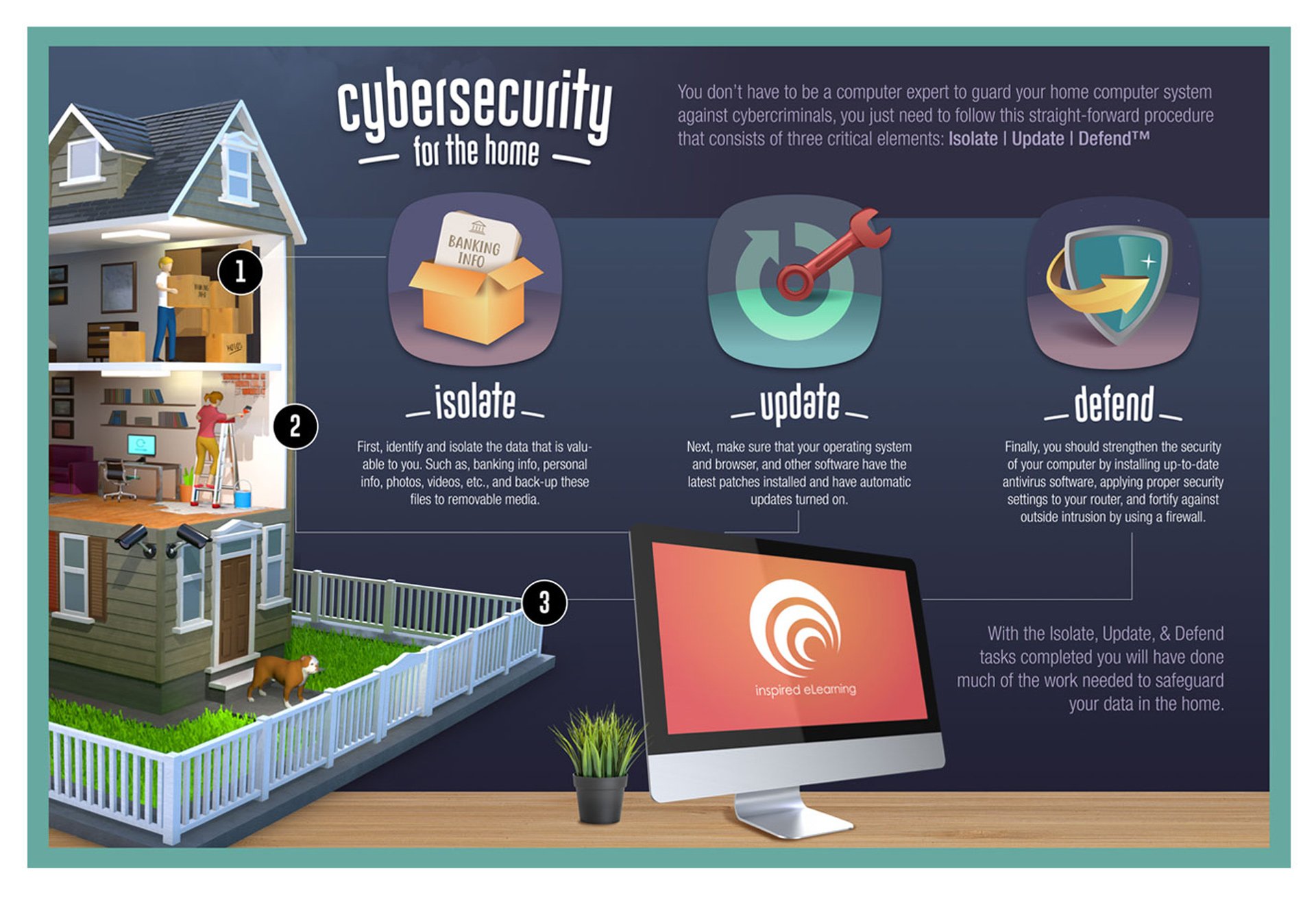 Concept and visual direction for an educational cybersecurity infographic.3D graphics by Adolfo Mojica.