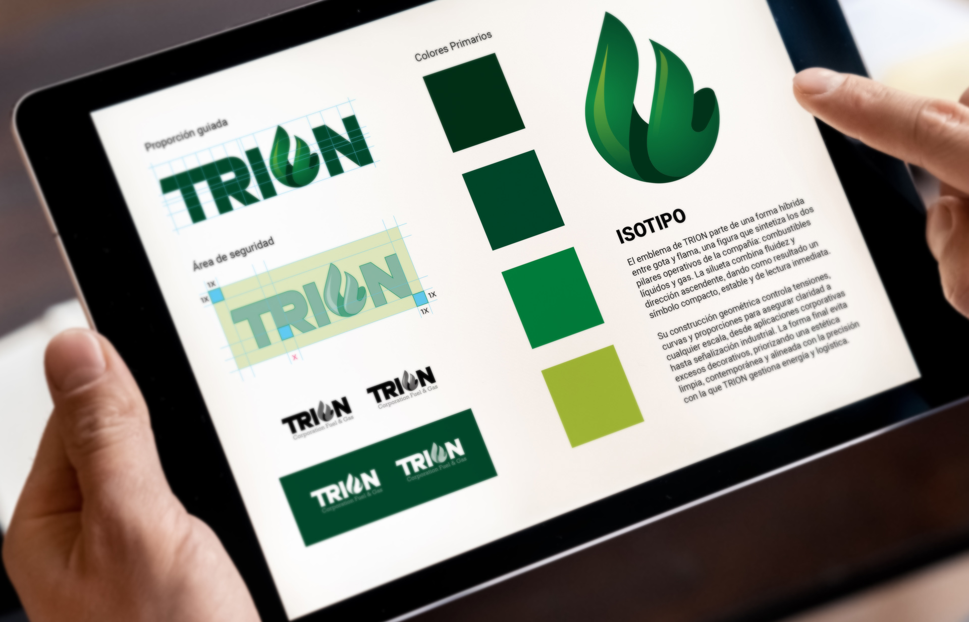 TRION is an energy corporation operating across fuel importation, gas supply and liquid energy solutions. Its renewed emblem brings together the fluid qualities of a drop and the upward motion of a flame, creating a form that feels both stable and dynamic. The logo was designed to function seamlessly at corporate scale—clear, versatile and contemporary—reflecting the precision and modernity behind TRION’s operations.